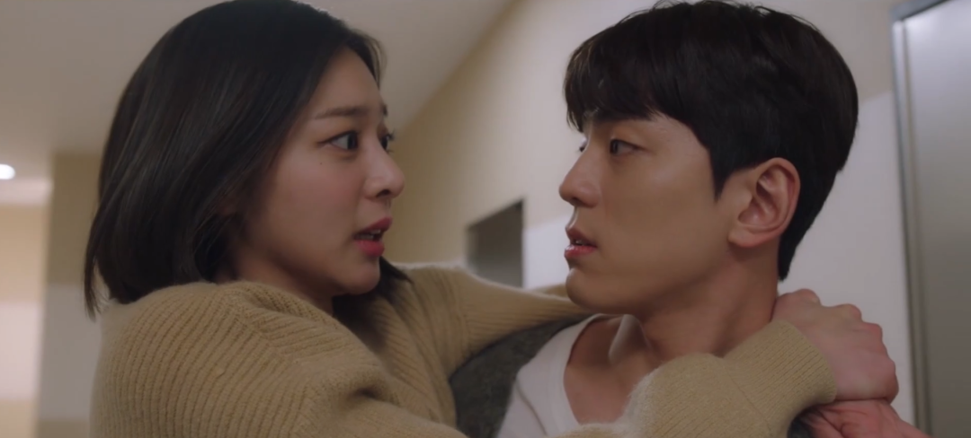 一个不小心,脚底打滑两人就吻在一起……